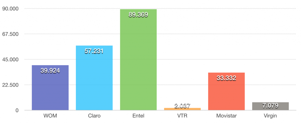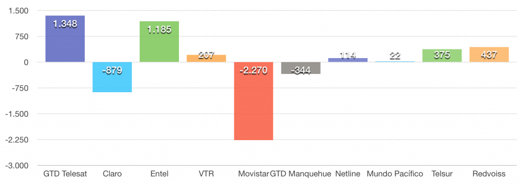 En cuanto a la telefonía fija las empresas con mayor cantidad de portaciones netas fueron: GTD Telesat (1.348); Entel (1.185); Redvoiss (437).