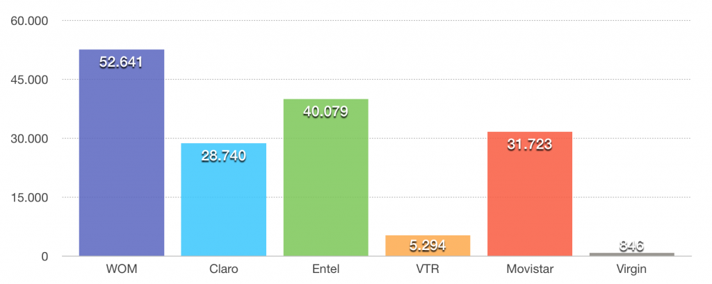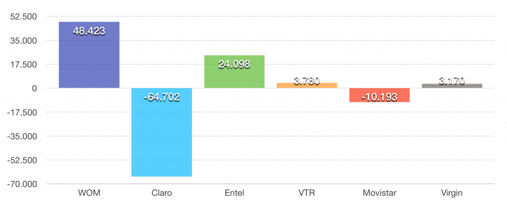 En cuanto a las empresas móviles, las que tuvieron durante enero la mayor cantidad de portaciones netas fueron: WOM (48.423); Entel (24.098); VTR (3.780).