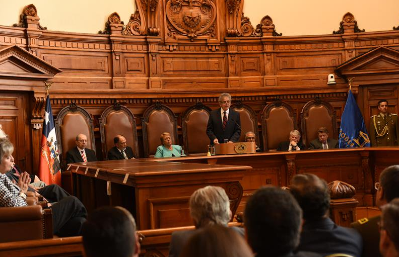 Convocatoria que formuló el ministro en la inauguración del Año Judicial 2018, ceremonia a la que asistieron la Presidenta de la República, Michelle Bachelet; el Presidente electo, Sebastián Piñera; el presidente del Senado, Andrés Zaldívar; el presidente del Tribunal Constitucional, Iván Aróstica; el fiscal nacional, Jorge Abbott, y el defensor nacional, Andrés Mahnke, entre otras autoridades.