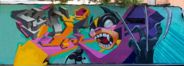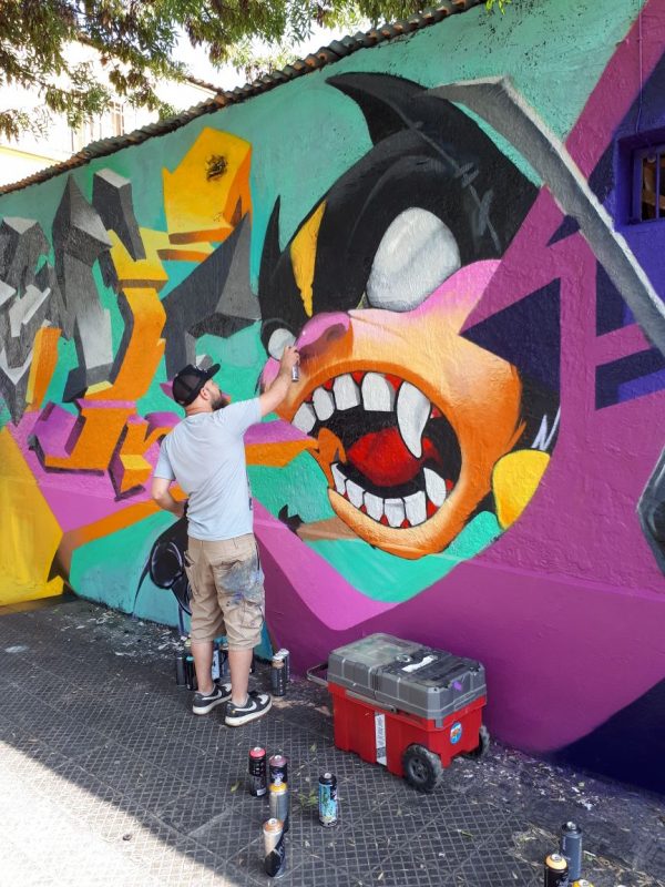 En el contexto de su visita a Chile, Smith estuvo durante tres días realizando su diseño y luego llenando de color este gran muro, en el que se plasmó el sello del profesional que podemos ver en todas sus creaciones.