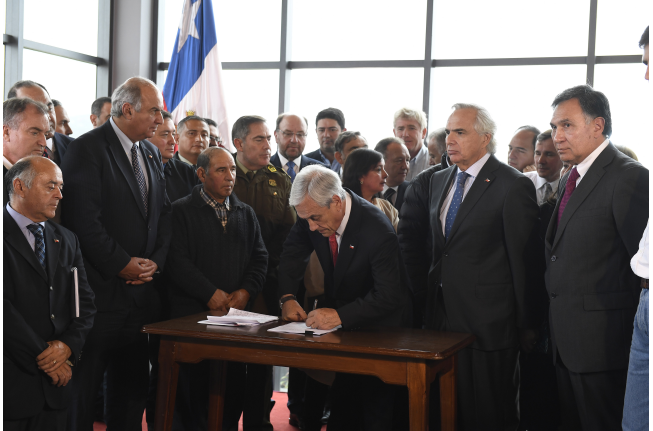 El Presidente Sebastián Piñera, firmó este viernes en su visita a La Araucanía una indicación sustitutiva de reforma a la Ley Antiterrorista, con la que busca fortalecer el combate contra la violencia para llevar más paz a todo Chile.