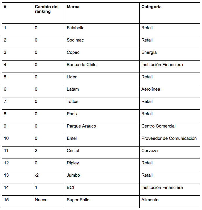 Las marcas más valiosas chilenas – BrandZ Top 15