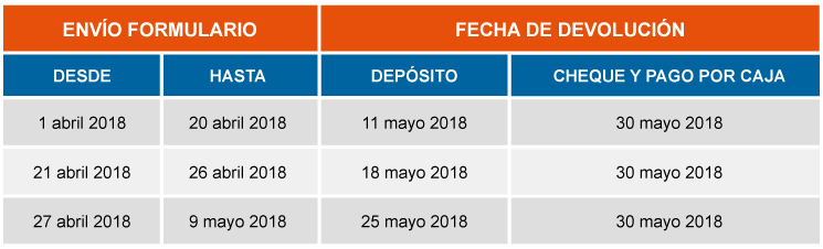 Las siguientes son las fechas de declaración y plazos asociados a la devolución de impuestos:
