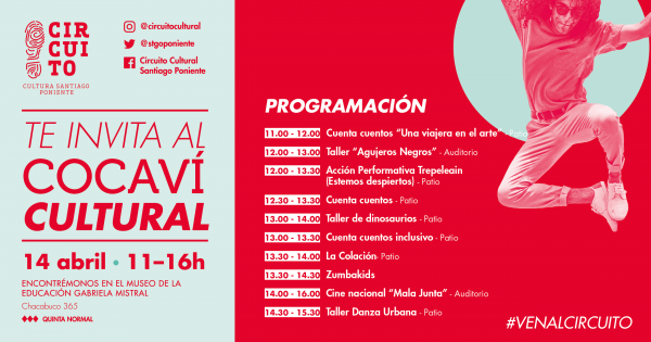 Bajo el eslogan de “Cocaví Cultural” el Circuito Cultura Santiago Poniente (CCSP), conformado en 2009, invita a la ciudadanía a participar de las diferentes actividades que son parte de la programación anual de las 11 instituciones culturales, educativas y científicas del eje Alameda, Matucana y Parque Quinta Normal.