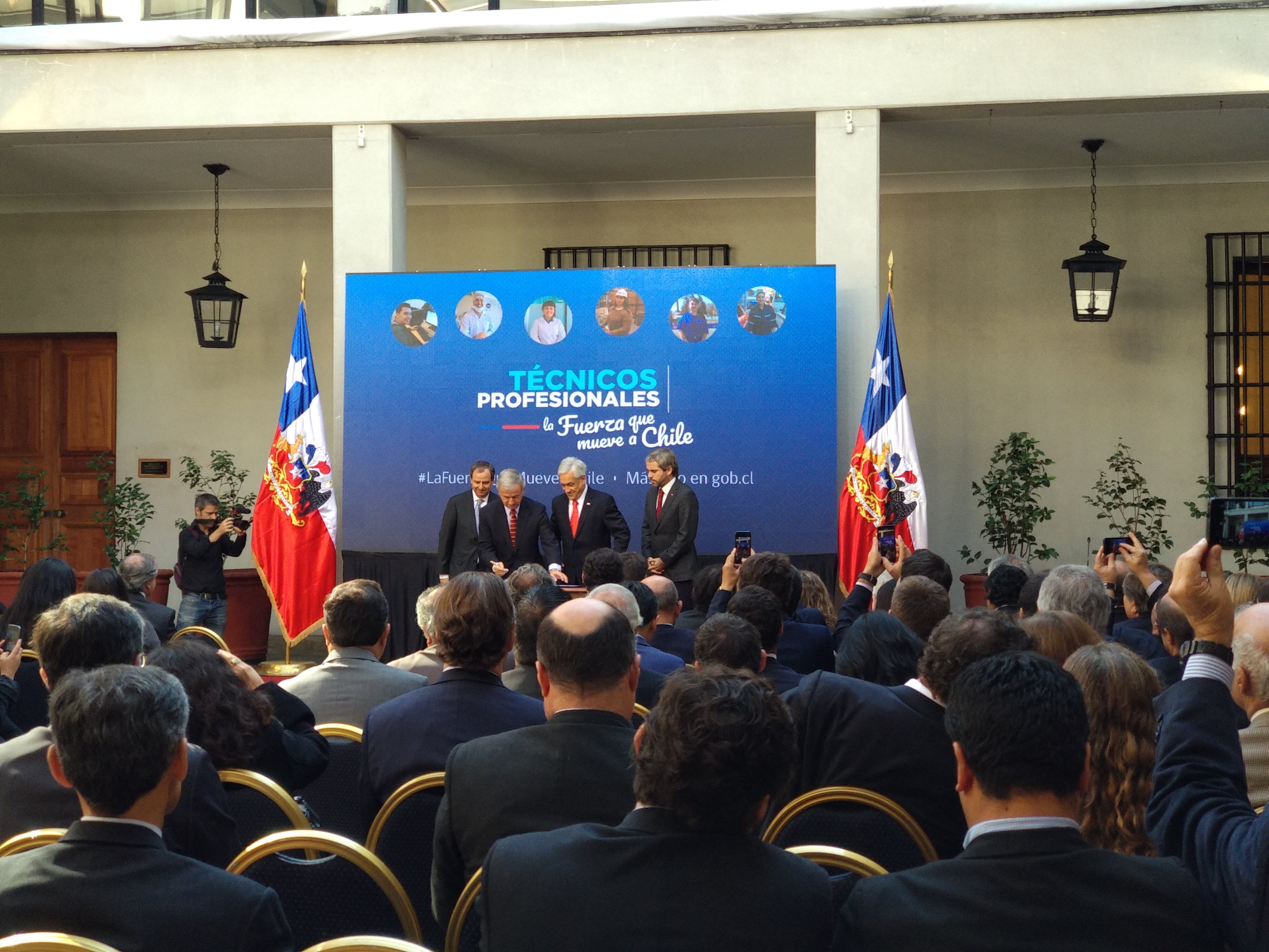 Uno de los cuatro proyectos que fueron anunciados al mes de gobierno. Esta jornada en el Patio de La Moneda se presentó la iniciativa que busca otorgar gratuidad al 70% de los estudiantes más vulnerables en Centros de Formación Técnica e Institutos Profesionales.