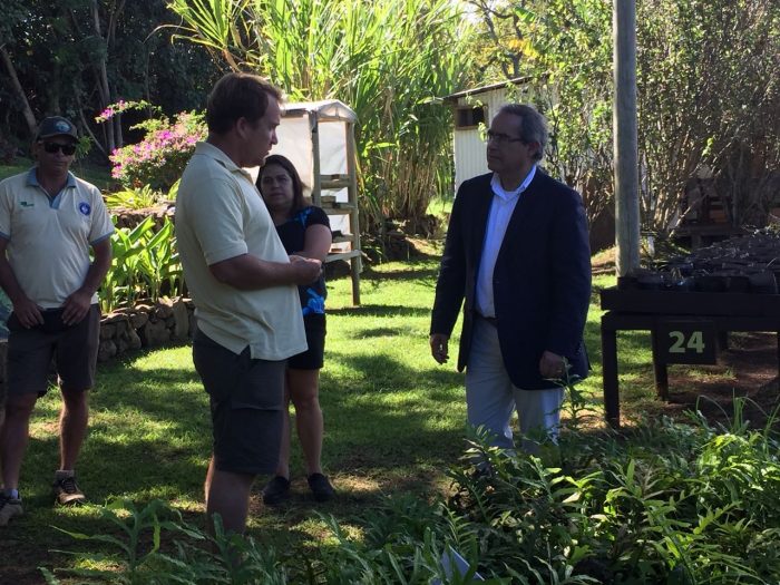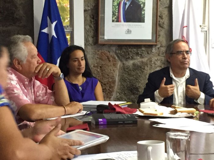 Además sostuvo reuniones de trabajo con la Codeipa, con el presidente de la comunidad Rapanui que administra el Parque Nacional, con la empresa de luz y generación de agua con que cuenta la isla, además se reunió con el personal del ministerio de Obras Públicas y visitó el vivero de Conaf en Isla donde se está recuperando, de manera inédita, el Toromiro.