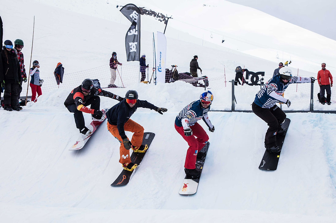 La pista se construye bajo norma FIS, de un largo de 1.200 metros y un desnivel de 150 metros aproximadamente, en la que cuatro o seis atletas de forma paralela descienden la pista en cerca de 50 segundos.