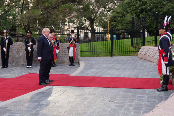 El inédito homenaje se realizó este domingo en la Plaza San Martín, hasta donde arribó el canciller del Reino Unido, Boris Johnson, quien colocó una ofrenda floral en el cenotafio de los caídos en la guerra de 1982 y que terminó con la rendición de las fuerzas militares argentinas que habían tomado por asalto las islas británicas en el Atlántico Sur.