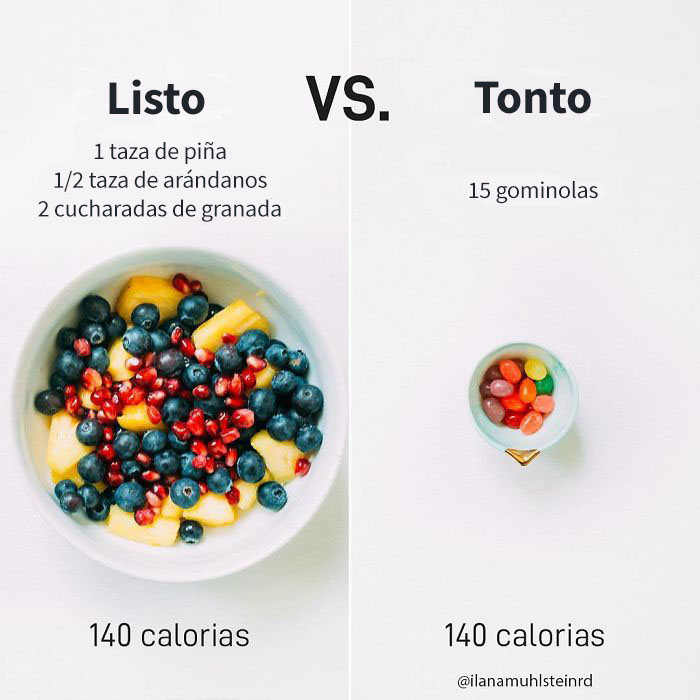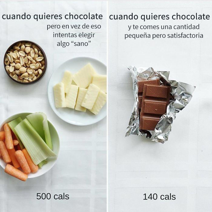 «Estos cambios no solo salvarán tu cintura, también tu salud,» escribe. Amanda nos anima a pensarlo y organizarnos. En vez de patatas fritas, probar con palomitas. Beber café negro en vez de lattes azucarados. Chocolate negro en vez de con leche. Preparar las comidas con antelación en vez de comer tentempiés a falta de otra cosa. Todo muy básico.