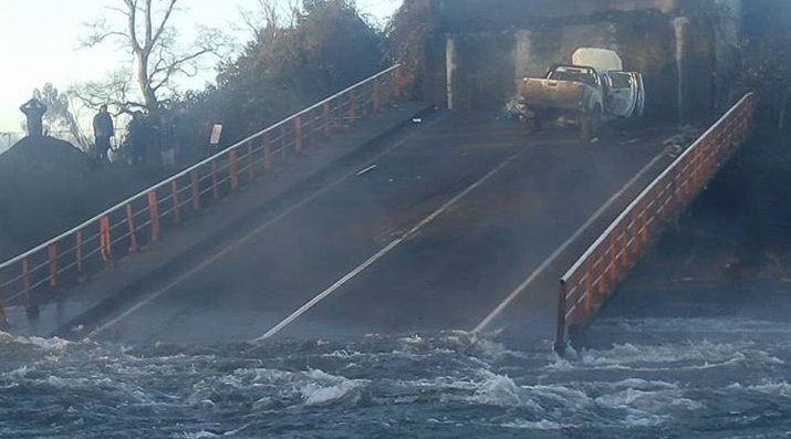 Colapsó puente Cancura en Osorno camino a Puerto Octay. Un fallecido, joven que venía llegando de Nueva Zelandia @CHVNoticiascl @victorarielp pic.twitter.com/vcwKkz0J6T