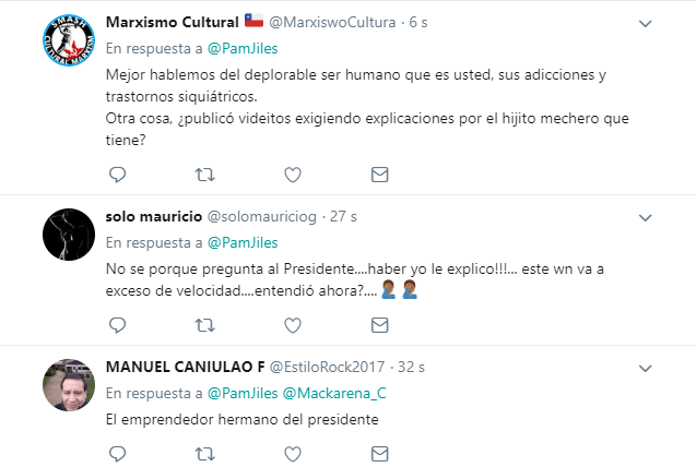 Sin embargo, este video provocó varios comentarios cuestionando el actuar del hermano del mandatario, pero también criticando a la parlamentaria opositora a quien le recordaron el episodio en el que su hijo fue detenido por robar especies en una tienda comercial.