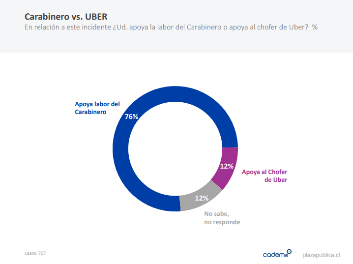 En ese sentido, el sondeo arrojó que un 76% aprobó la labor del Carabinero mientras que un 12% respaldó al chofer de la aplicación.