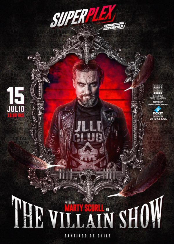 La empresa de espectáculos de lucha libre, Wrestling Superstar y Hugo Savinovich anuncian que Marty Scurll, integrante del Bullet Club, reta en una lucha por Campeonato Indiscutible de Chile, en una Triple Amenaza, a Sangre Chilena (Campeón) y a Rex, para el domingo 15 de julio, cuando se presenta el evento SuperPlex, «The Villain Show», 18 horas en el Teatro Novedades, ubicado en Cueto 257, Barrio Yungay, en Santiago de Chile.