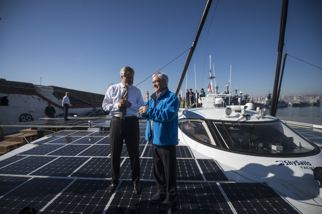 El barco – que funciona en base a energía solar, eólica y de hidrógeno- inició su viaje en 2017 en el puerto francés de Lorient y realizó una escala en Valparaíso, desde donde seguirá su viaje a Concepcion y luego a Isla de Pascua.