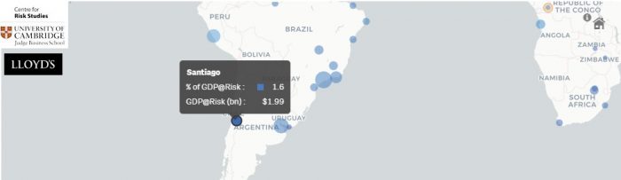 Santiago, al verse afectada por catástrofes naturales, pandemias o un ciberataque podría perder hasta US$1.990 millones de su producto interno bruto (PIB) anual, según el estudio británico, que estableció 22 amenazas críticas en 279 grandes ciudades del mundo que sman el 41% de laeconomía mundial