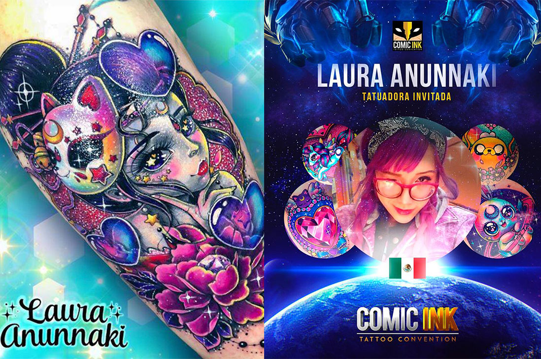 Hermosos diseños inspirados en la cultura Kawaii son los que llevaron a la fama a Laura Anunnaki, la joven tatuadora mexicana que con poco más de 20 años tiene millones de seguidores en el mundo, los que esperan meses e incluso años, por tener una de sus obras dibujadas en el cuerpo.