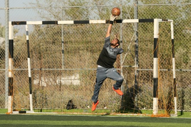 “Los entrenamientos son difíciles pero divertidos”, señala otro portero, Abdelmajid Abou Milak, de 25 años, que perdió su mano tras ser alcanzado por un obús israelí.