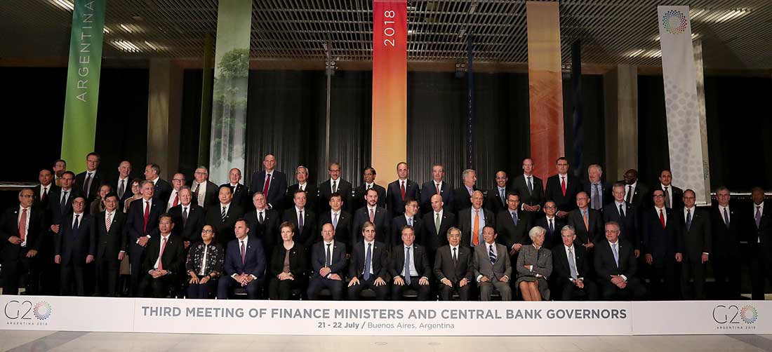 Los ministros de Economía y presidentes de bancos centrales del G20 señalaron que aunque el crecimiento de la economía mundial sigue siendo «robusto», los «riesgos de corto y mediano plazo» sobre la actividad global se han incrementado, encarnados en particular en «las tensiones comerciales y geopolíticas».