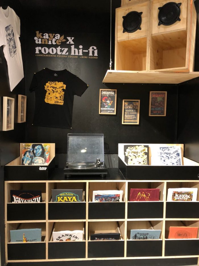 Es así como el pasado sábado 21 de julio se inauguró la quinta tienda de estas características, en el Mall Plaza Oeste, local que tiene una particularidad: cuenta con un sistema de amplificación desarrollado por Rootz Hi Fi, y que será el primer mini Sound System construido 100% a mano que existe en Chile, y que reproduce especialmente vinilos. “Este sistema está a disposición de todos los amantes de la música para que puedan disfrutar de su increíble sonido”, explica uno de sus fundadores y el Gerente General de Kaya Unite, Gerardo Joannon.