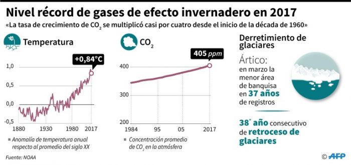 La emisión de gases de efecto invernadero alcanzó un nuevo récord en 2017, mientras las altas temperaturas asolan el planeta y el deshielo en el Ártico alcanzó su nivel más alto debido al cambio climático, según un estudio publicado el miércoles y en el cual han contribuido 450 científicos.