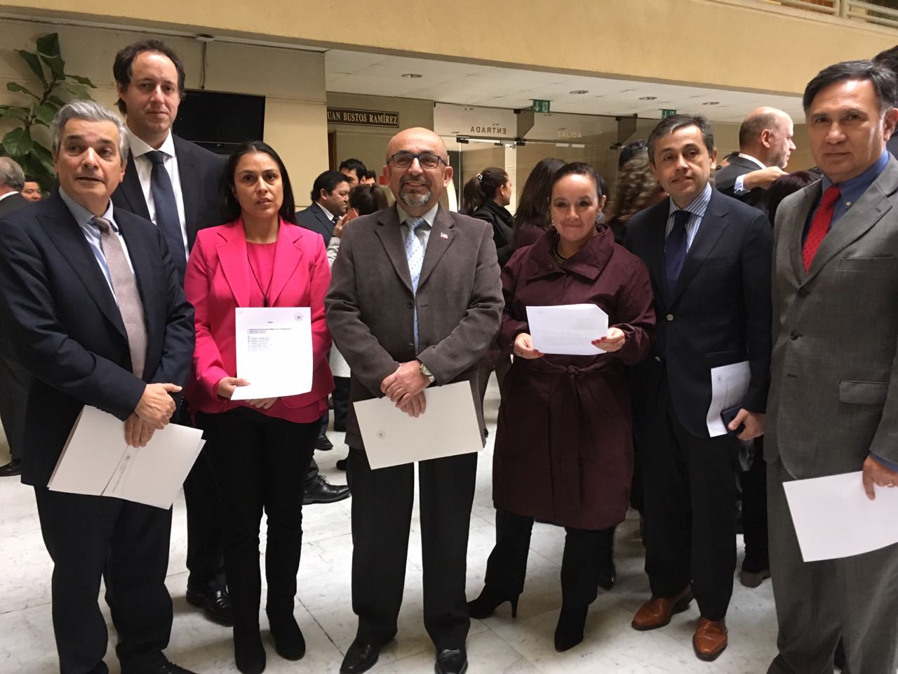 Los diputados de RN, Francesca Muñoz, Leonidas Romero y Eduardo Durán, junto a su par DC, Jorge Sabag y la senadora de Evopoli, Carmen Gloria Aravena, presentaron un oficio de fiscalización sobre las cifras de denuncias por aborto en la causal de violación, debido a eventuales faltas de cumplimento del protocolo.