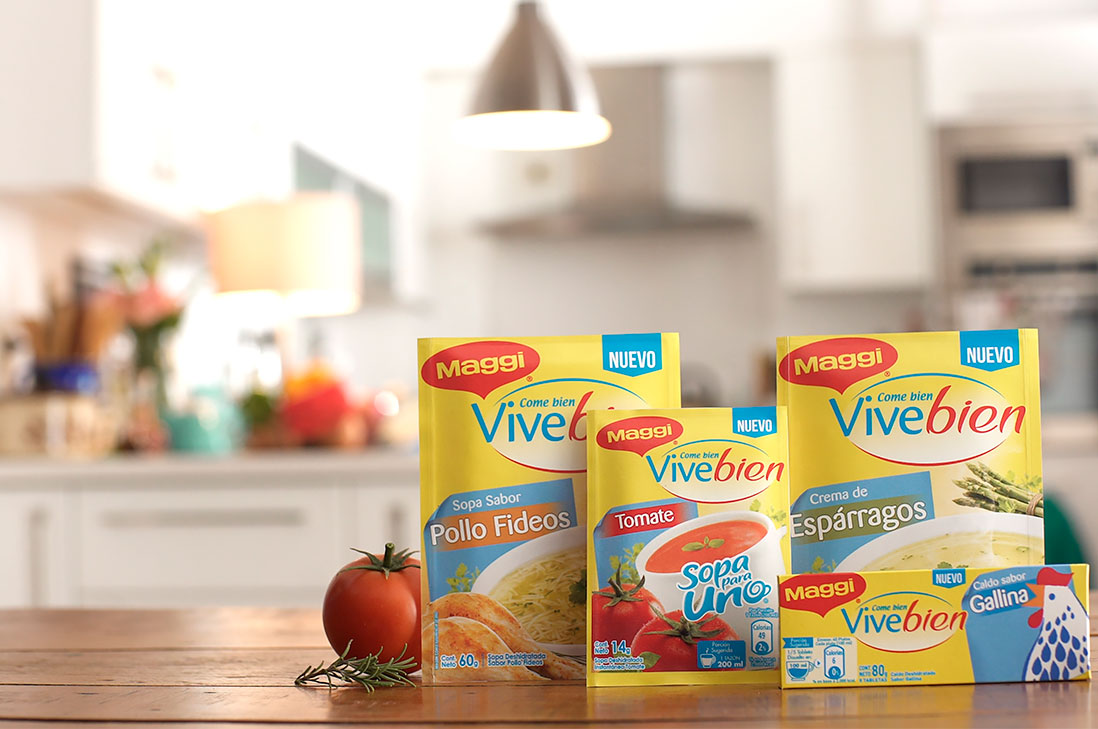 La nueva línea de Sopas, Cremas y Caldos Come Bien Vive Bien de Maggi, con sabor casero y 80% menos de sal, las puedes encontrar tanto en formato familiar como individual y ayudan a pasar el frio y alimentarse adecuadamente.