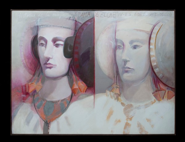 La artista también busca referencias femeninas en las culturas antiguas. “Cariátides” (2008) cita las columnas de la antigua Grecia, típicamente ocupadas por figuras femeninas esculpidas sin brazos, que soportan peso sobre la cabeza; “La dama de Elche” (1986) es la versión de Bru una de las más famosas esculturas de la cultura ibérica, un busto de una mujer con fantásticos ornamentos.
