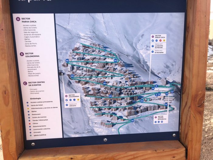 La Parva se encuentra a tan sólo 50 kilómetros de la capital y tiene una hermosa vista al valle de Santiago. Emplazado a una altura de 2750 metros sobre el nivel del mar y cuenta con todos los servicios necesarios, pistas de excelente nivel para esquiadores de categoría mundial, especialmente pensadas para prácticas como Snowboard y Heliski .