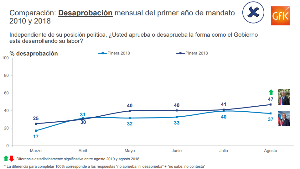 Por otro lado, la desaprobación pasó de 41% en julio a 47% en agosto (+6%), lo que es un aumento significativo desde el punto de vista estadístico.