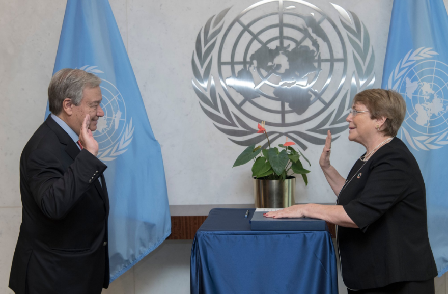 La expresidenta chilena Michelle Bachelet (@mbachelet) ya ha jurado el cargo como nueva Alta Comisionada para los Derechos Humanos ante el Secretario General @antonioguterres.