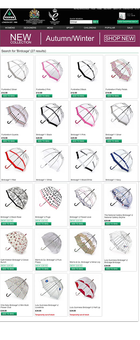 Desde 1993, la Reina ha usado su estilo favorito de paraguas, el diseño birdcage creado por Fulton. Naturalmente, ella los obtiene personalizados en gran varierdad de colores, para que encajen perfectamente con su gran cantidad de trajes y sombreros.