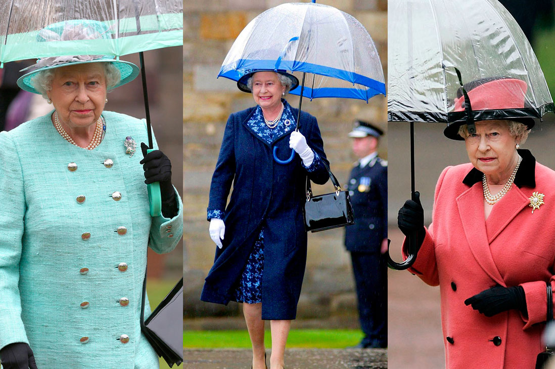 Ser la Reina Elizabeth, de Reino Unido, y vivir en Londres, implica mucha lluvia. Muchísima lluvia. Por eso, no es inusual que en sus salidas de asuntos oficiales, se enfrente a ella con un paraguas y una sonrisa.
