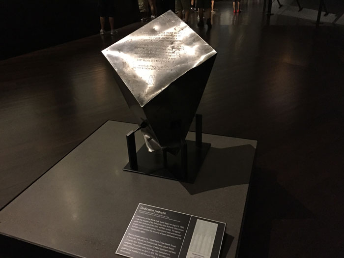 La tienda de souvenirs que está a pasos del World Trade Center ofrece una completa línea de regalos que recuerdan el 9/11, en la tienda se pueden ver fotos del ataque y un trozo de metal de una de las torres gemelas, todos los fondos recaudados son para mantener el memorial.