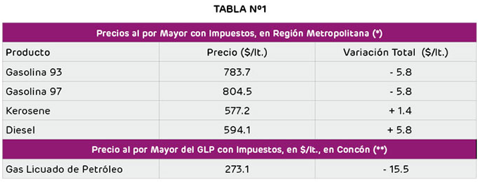 De esta forma, las bencinas de 93 y 97 tendrán una caída de 5,8 pesos por litro, mientras que el gas licuado caerá en 15,5 pesos por litro.