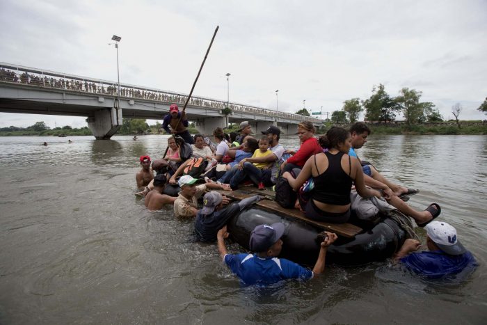 Parte de la caravana migrante, que salió de Honduras hace más de una semana con más de 4000 personas según los organizadores, logró cruzar ilegalmente el río fronterizo y evadir la vigilancia de cientos de policías mexicanos sobre el puente internacional, por donde solo se permite el paso a mujeres y niños.