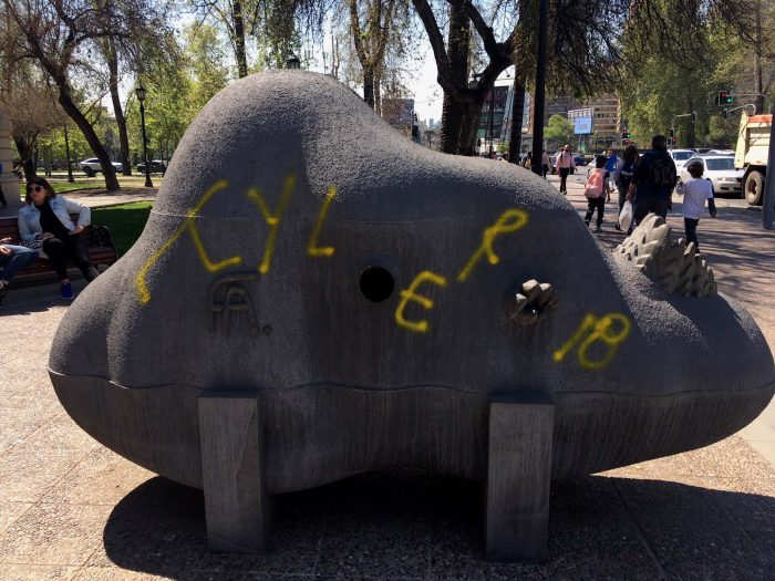 Este espacio público del Santiago Patrimonial, en el Parque Forestal, sin duda uno de los más esplendoroso de la capital- es blanco permanente de rayados e “incivilidades” como le gusta decir ahora, pero lamentablemente, durante la noche, poca y nada seguridad comunal y menos policial.