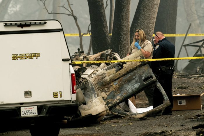 El incendio del norte de California que comenzó una semana antes destruyó la ciudad de Paradise. Los buscadores han sacado cuerpos de casas incineradas y autos calcinado, pero en muchos casos, las víctimas pueden haber sido reducidas a trozos de huesos y cenizas. El último peaje: 63 muertos y 9.800 viviendas destruidas.