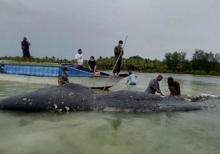 Los rescatistas del Parque Nacional de Wakatobi encontraron el cadáver putrefacto del cachalote de 9.5 metros (31 pies) el lunes por la noche cerca del parque en el sureste de la provincia de Sulawesi después de escuchar que los aldeanos estaban comenzando a cortar el cadáver podrido, dijo el jefe del parque, Heri Santoso.