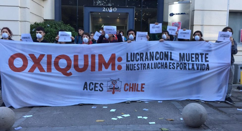Con tres detenidos y un llamado a marchar mañana jueves terminó una protesta en las afueras de las oficinas de Oxiquim, que un grupo de estudiantes realizó en solidaridad por los graves episodios de contaminación e intoxicados de la comuna de Quintero.