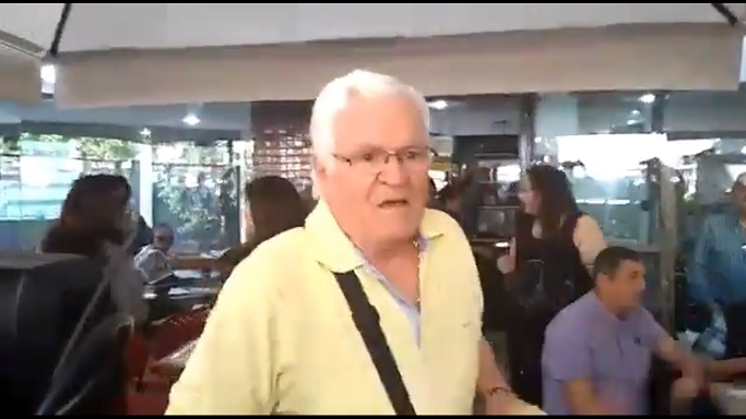 Un grupo de personas funó este jueves a Marcos Derpich Miranda, a quien acusaron de ser un violador de derechos humanos de la dictadura militar, mientras tomaba un café en un local de Avenida Tobalaba.