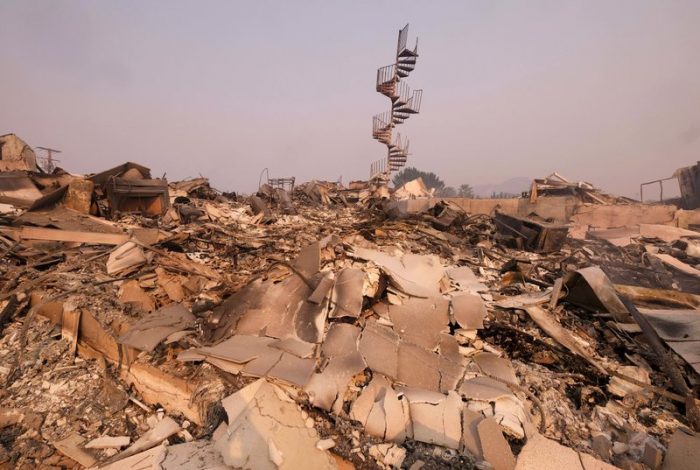 MALIBU, California, EE.UU. (AP) – Dos personas fueron encontradas muertas y decenas de casas, desde casas de ranchos hasta mansiones de celebridades quemadas en un par de incendios forestales que se extendían por más de 100 millas cuadradas del sur de California, dijeron las autoridades el sábado.