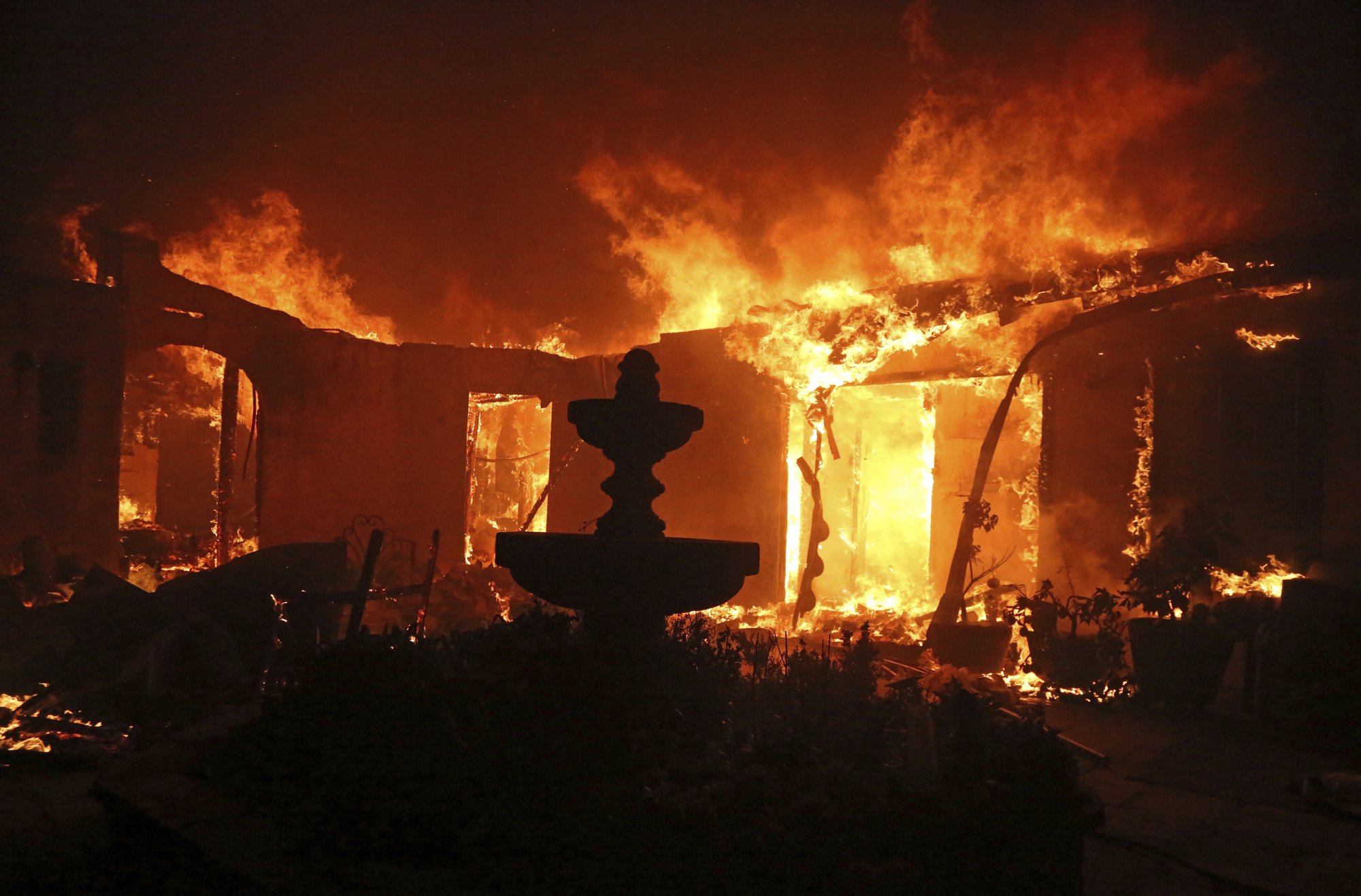 MALIBU, California, EE.UU. (AP) – Dos personas fueron encontradas muertas y decenas de casas, desde casas de ranchos hasta mansiones de celebridades quemadas en un par de incendios forestales que se extendían por más de 100 millas cuadradas del sur de California, dijeron las autoridades el sábado.