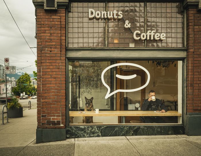 “Los perros policía siguieron las instrucciones de sus cuidadores durante la sesión de fotos y se portaron bien. Se pueden ver sus personalidades en las fotos. PSD Brando está genial con las gafas de sol, y PSD Bailey está en la cafetería. Y PSD Jack se toma su trabajo muy en serio.”