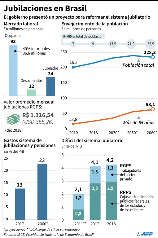 El presidente Jair Bolsonaro presentó este miércoles el proyecto de reforma del sistema de jubilaciones, considerado vital para el equilibrio financiero de Brasil, pero que enfrentará un arduo camino legislativo antes de ser aprobado.