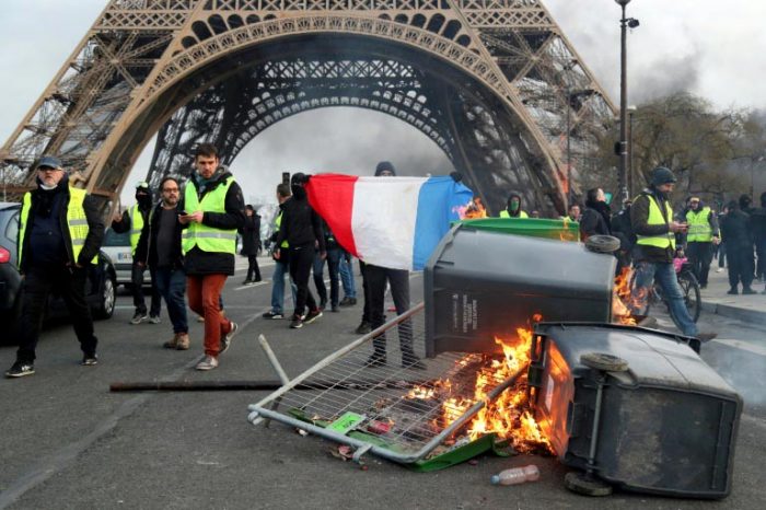 Más de 50.000 «chalecos amarillos» se movilizaron este sábado en toda Francia, una cifra de nuevo inferior a protestas pasadas, y algunos protagonizaron incidentes en ciudades como París, donde un manifestante perdió cuatro dedos una mano por el estallido de un artefacto aparentemente lanzado por la policía, reporta un cable de AFP.