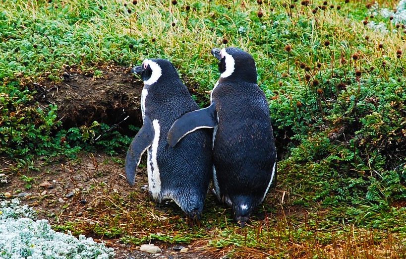 Estos pingüinos se distribuyen por el océano Pacífico y Atlántico, dependiendo de la ubicación de las colonias de reproducción. Son animales muy sociables, siempre se mantienen en bandadas para pescar. Cuando llegan a la madurez sexual, buscan a una pareja con la cual se quedarán para toda la vida. Al momento de la reproducción, se acercan a las costas chilenas y la hembra rastrea a su pareja a través del sonido, siguiendo su llamado. El macho la espera en el nido para albergar a la nueva cría que cuidarán juntos.