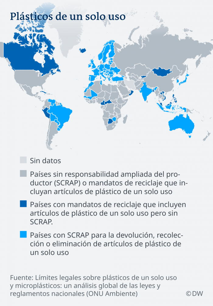 Chile produce anualmente alrededor de 3.200 millones de bolsas plásticas y alrededor de 90% termina en vertederos o en el mar. En Perú, dónde se consumen 947.000 toneladas de plásticos al año, el gobierno aprobó, el pasado mes de diciembre, la ley del plástico que prohíbe productos como los sorbetes de plástico, bolsas de plástico y envases de tecnopor para bebidas y alimentos.