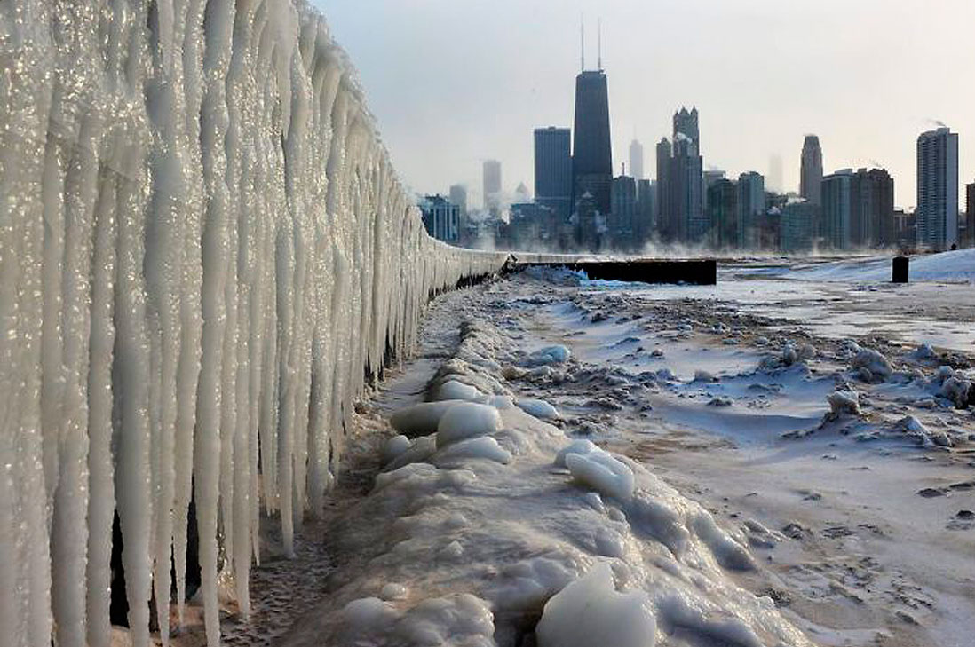 El vórtice polar es un ciclón persistente a gran escala situado cerca de las zonas polares terrestres. A veces, como este año, llega más al sur de lo habitual, alcanzando zonas muy pobladas de EEUU. En Chicago ha golpeado duramente, y en las cercanías del lago Michigan las temperaturas han sido tan bajas que han batido récords.