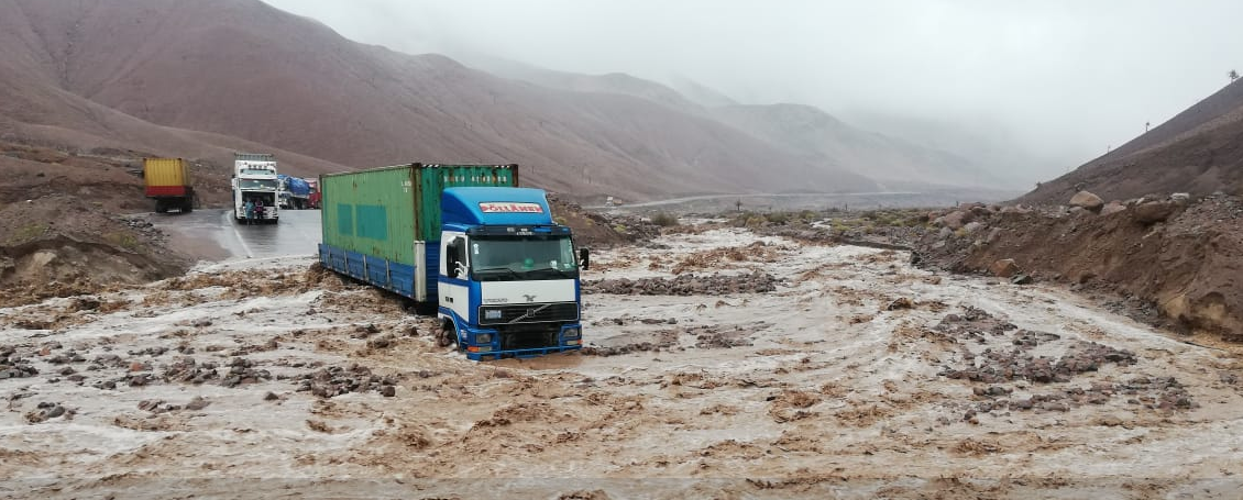 Ruta 5 Norte (Arica – Iquique) tránsito suspendido a la altura del kilómetro del 1.950, por desborde del Río Chiza.