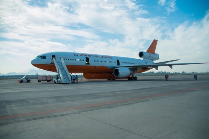 El TenTanker, mide 50 metros de largo y tiene una capacidad de 36.000 litros de agua y tendrá dos bases operativas, en Santiago y Concepción, desde donde se abastecerá de agua y operará sobre los focos de incendios desde la Región de Valparaíso hasta la Región de Aysén.